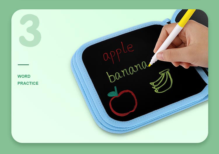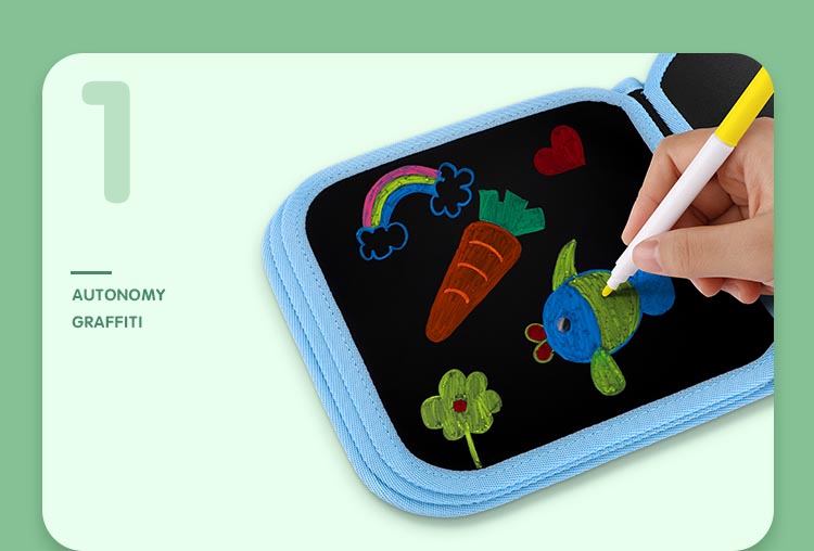 Safe and Non-toxic. We attach great importance to children's health and safety. This Doodle Booklet is made of environmentally friendly PVC material, non-toxic. Rounded edges and soft curves eliminate any potential injuries.