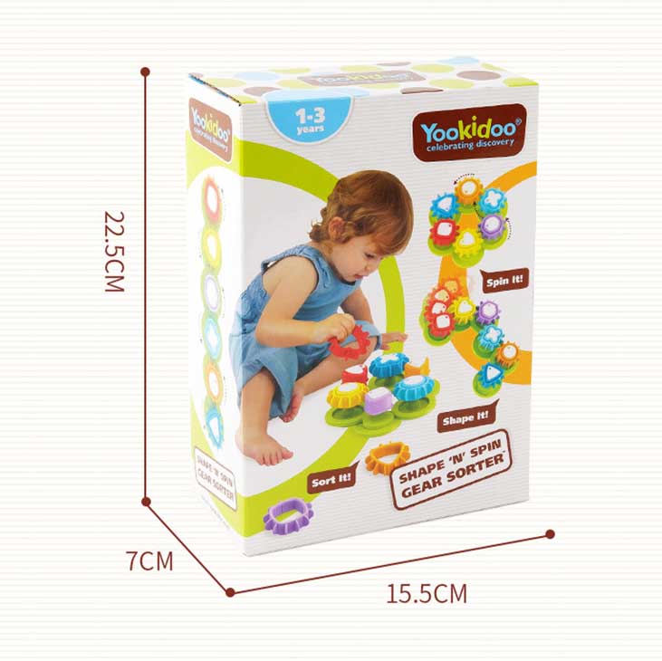 AN INNOVATIVE SORT, SHAPE, AND SPIN SORTER FOR KIDS: Multicolored Shapes Sorting Gears is a "must-have" for every toddler.